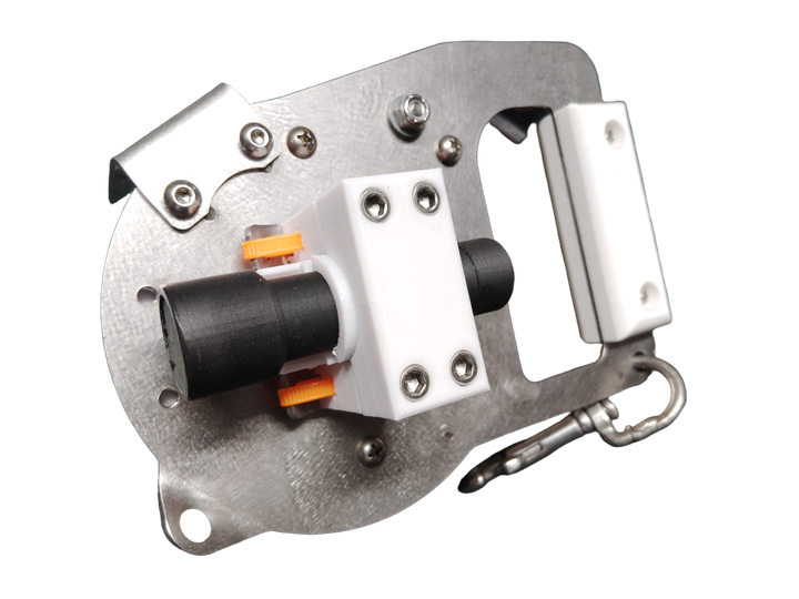 SMB mount with bungee on the backside of the chassis. When used, it creates a tidy package that allows for quick deployment of your safety marker. NO SMB INCLUDED. Optional Light Mount Kit is available to use the SMB bracket to mount your mini dive light.