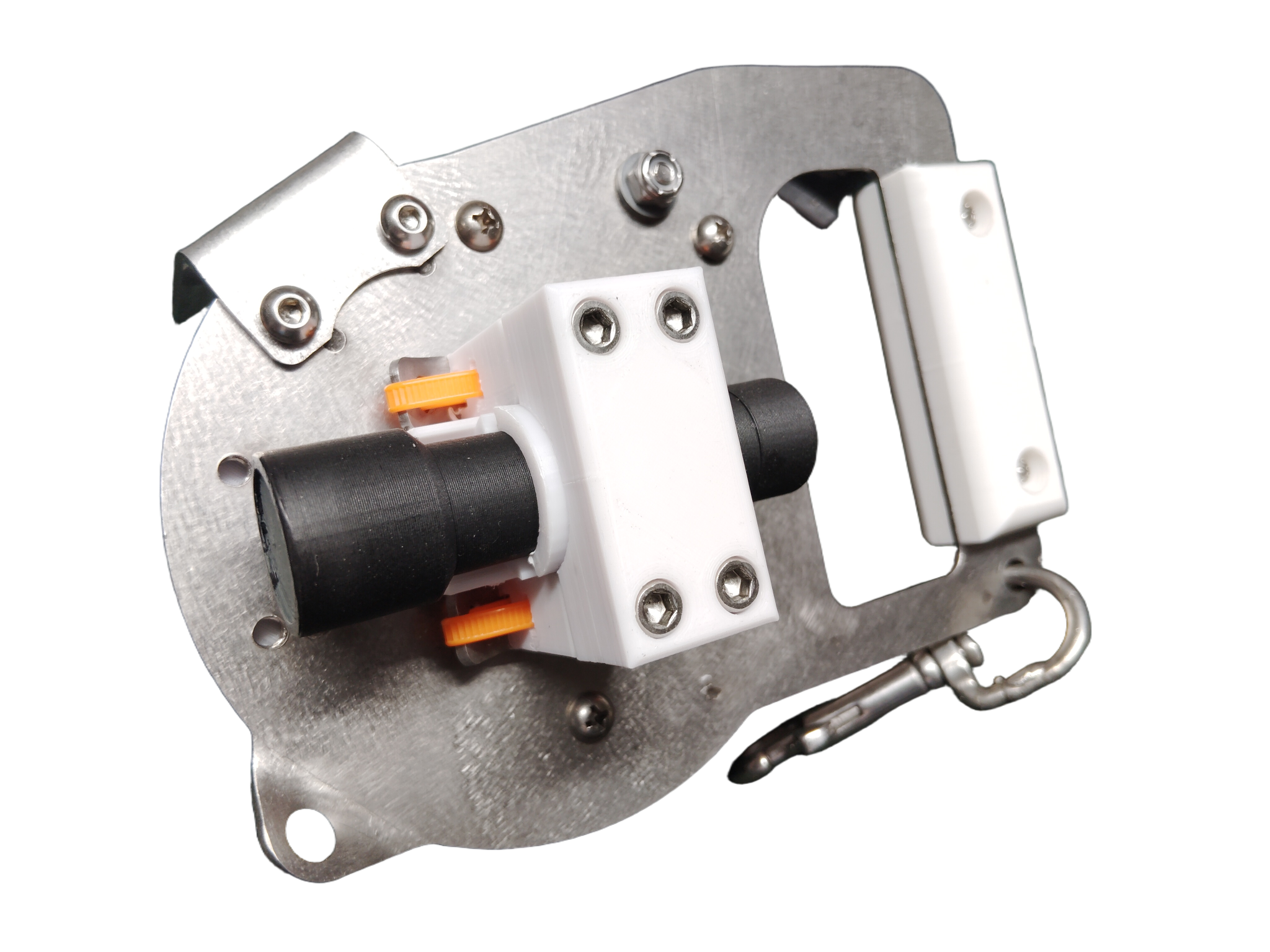 SMB mount with bungee on the backside of the chassis. When used, it creates a tidy package that allows for quick deployment of your safety marker. NO SMB INCLUDED. Optional Light Mount Kit is available to use the SMB bracket to mount your mini dive light.